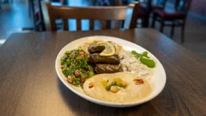 Hummus, Baba Ghanouj, Tabbouli, Taziki & Dolmas