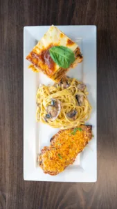 Beef Lasagna, Linguini Alfredo & Chicken Parmesan W/ Your Choice of Salad
